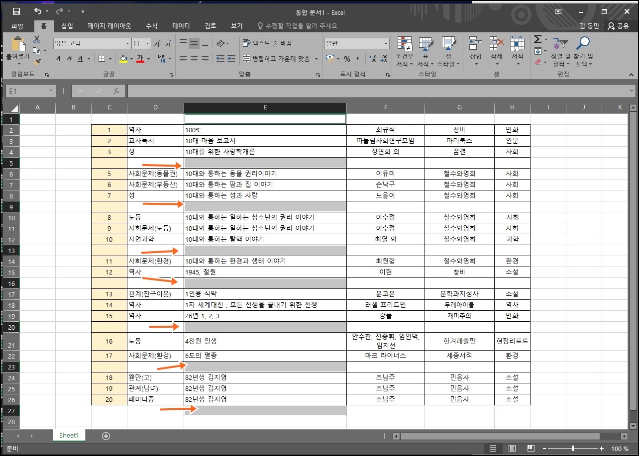 짜잔!! 위 사진처럼 빈 행들이 전부 삭제가 되었어요. 참 쉽죠?^^