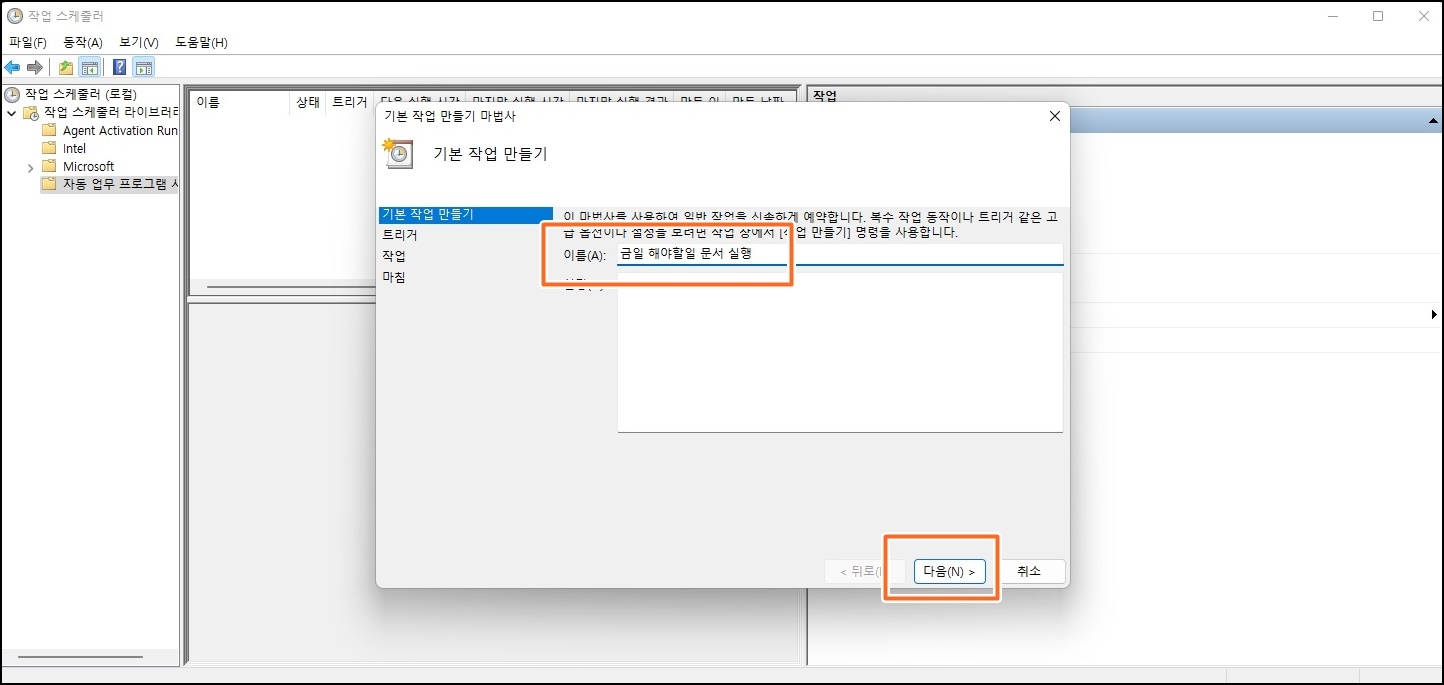 작업 이름을 입력 후 "다음"버튼을 클릭해주세요.