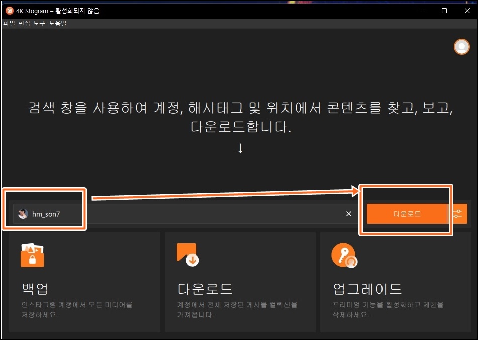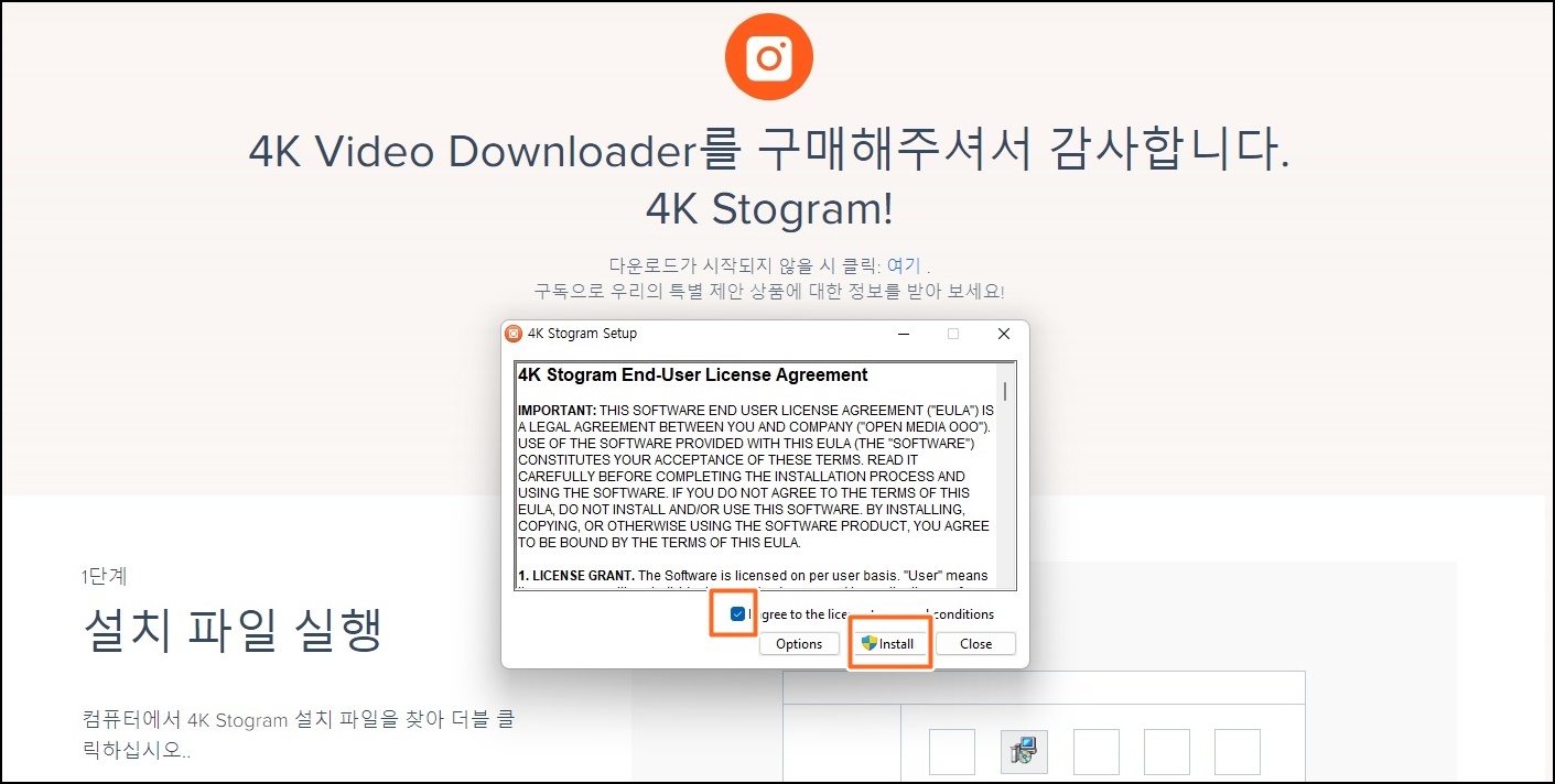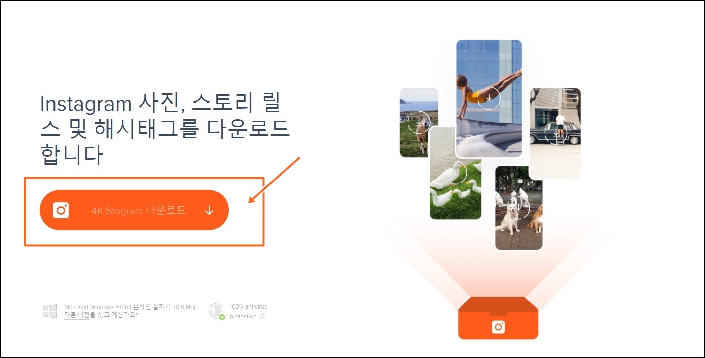 메인 페이지 중간의 4K Stogram 다운로드를 클릭해서 설치 파일을 다운로드해주세요.