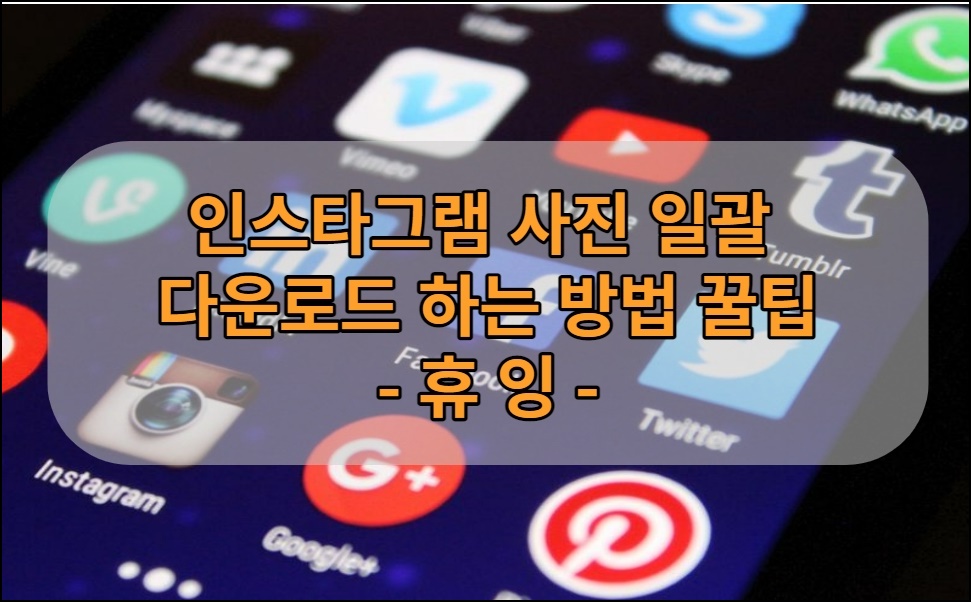 안녕하세요 오늘도 휴잉의 블로그를 찾아주신 여러분 감사드려요. 오늘 제가 포스팅할 내용은 인스타그램 사진을 일괄 다운로드하는 방법에 대해 소개해드리려고 해요. 저희 와이프가 최근에 인스타그램에 빠져서 사진이나 영상들을 업로드하는 경우가 많은데, 필요에 따라 인스타그램에 업로드했던 사진이나 영상들을 백업해야 하는 경우가 발생하더라고요. 게시물이 한두 개 정도면 하나씩 다운로드해두면 상관없지만 게시물도 많고 동영상이 있는 경우 여간 힘든 게 아니더라고요. 그래서 오늘 이런 문제로 인해 고민이신 분들을 위해 인사트그램 사진이나 영상 등을 일괄로 다운로드하는 방법을 여러분들께 설명드릴게요.