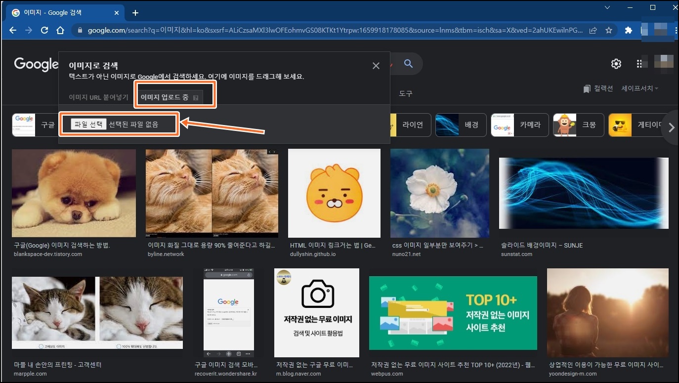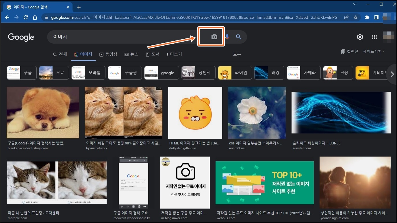 검색창 오른쪽에 보시면 카메라 모양 아이콘이 보이실텐데 클릭해주세요.