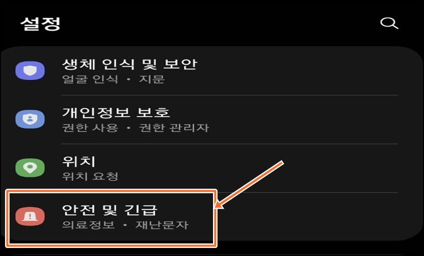 설정 메뉴에서 조금만 내려보시면 위 사진과 같이 "안전 및 긴급"메뉴를 확인하실 수 있을 텐데 클릭해서 들어가 주세요.