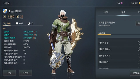 혼자 사냥할때에는 방어에 특화된 직업이다보니 데미지가 나오지 않아 사냥속도가 떨어져 전투 효율이 낮은 편이에요.