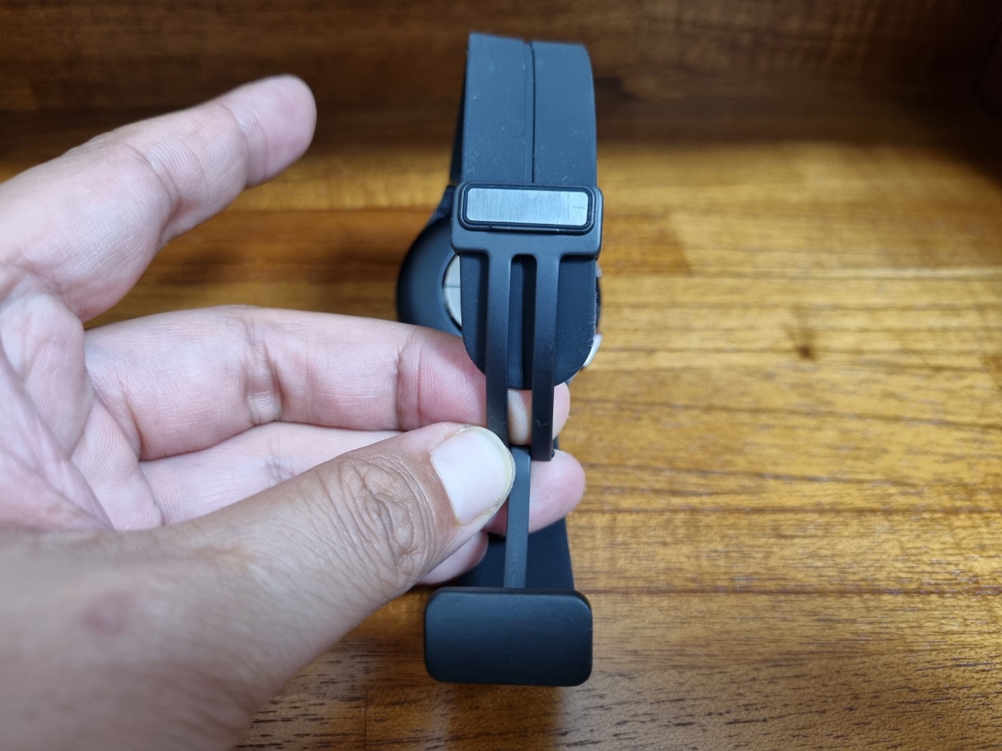 새로운 스트랩은 프로버전에만 적용이 되었는데 논 버클 방식 , 마그네틱(자석)을 이용해 부는 방식으로 한번 내 손목 크기로 세팅해두면 손쉽게 착용이 가능해 편리함과 깔끔한 착용감을 느낄 수 있게 하는 것 같아요.