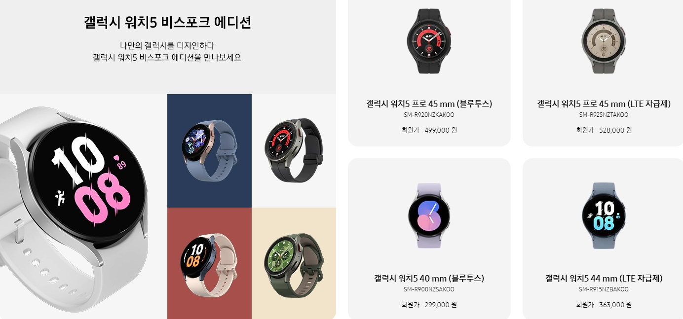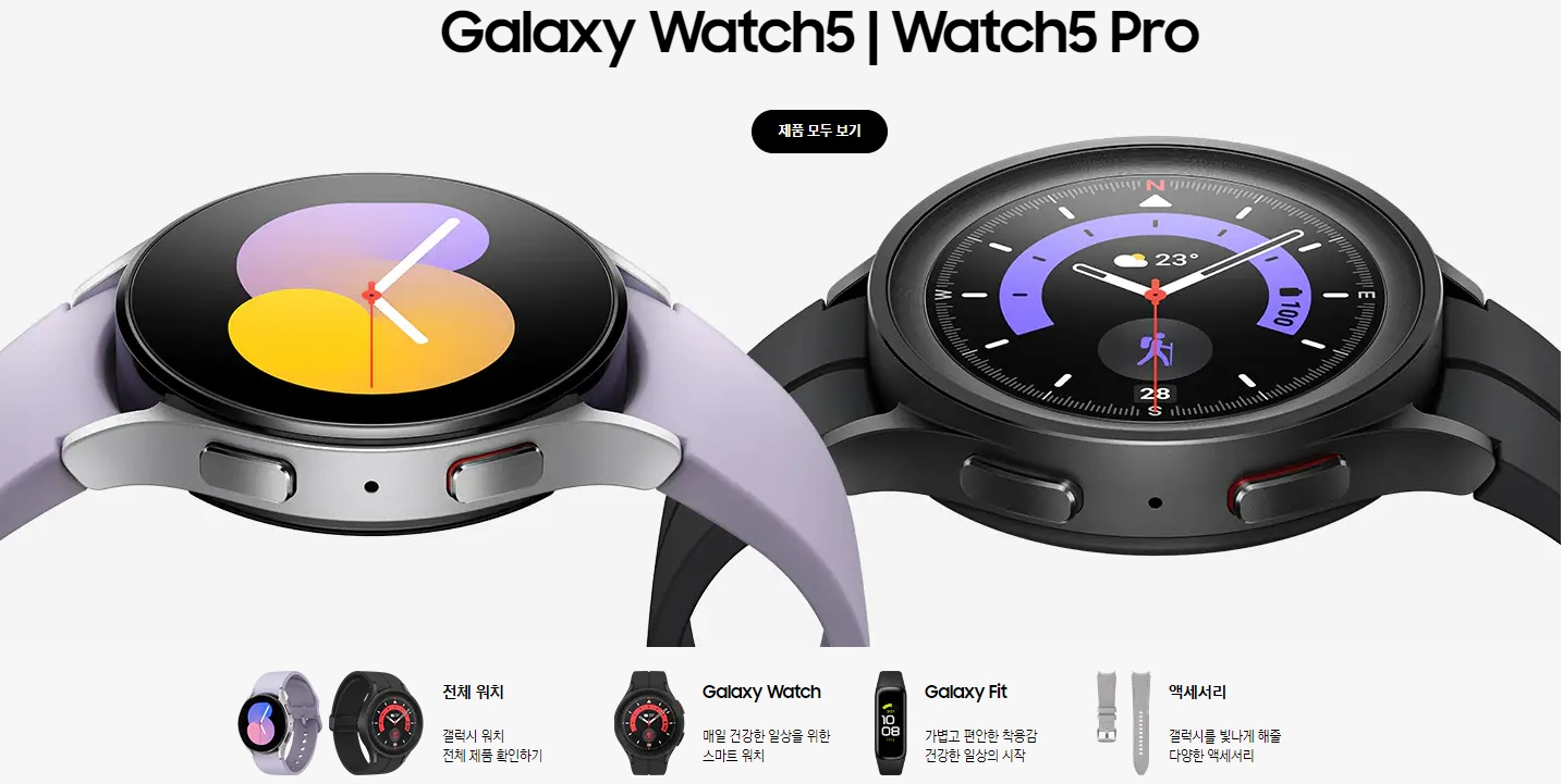 갤럭시 워치 5는 총 3가지 모델로 출시되었는데 일반 40mm 44mm 그리고 프로 모델로 구성되었어요. 아무래도 40mm가 가격 면에서는 가장 저렴하다고 할 수 있는데, 크기가 작다 보니 남성분보단 여성분에다가 더 잘 어울리는 사이즈 일 것 같더라고요.