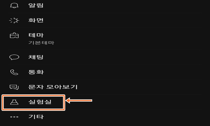 설정으로 들어가시면 메뉴 중간쯤에 [실험실]을 확인하실 수 있을 텐데 클릭해서 들어가 주세요.