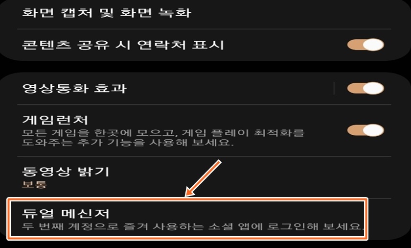 "듀얼 메신저" 메뉴를 클릭해서 들어가 주세요. 진행이 아주 쉽죠?^^