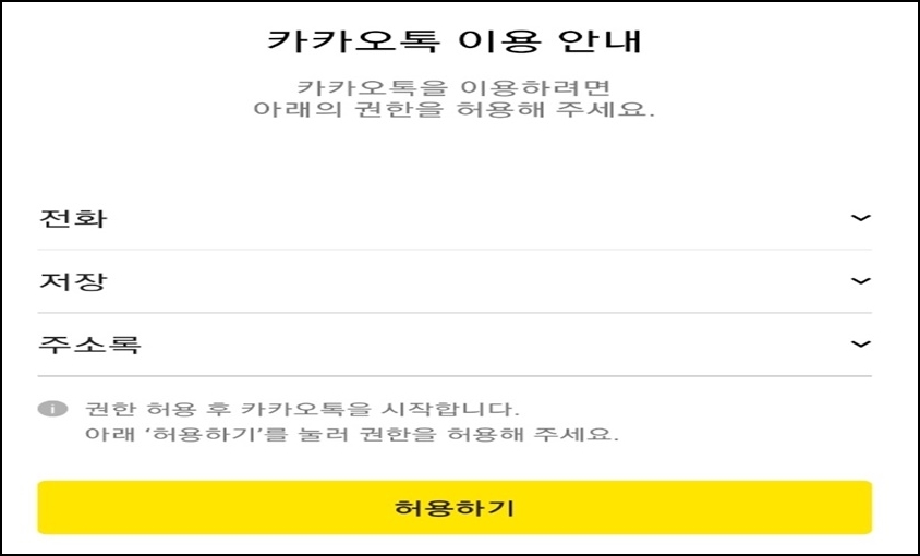 전화 , 저장, 주소록 등 "허용하기"를 클릭해서 넘어가 주세요.