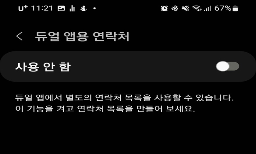 듀얼 앱용 연락처는 듀얼 앱에서 별도의 연락처 목록을 따로 만들어 사용할 수 있어요. 안 하실 거면 그냥 무시하시고 하단의 "다음"버튼을 클릭해서 넘어가 주세요.