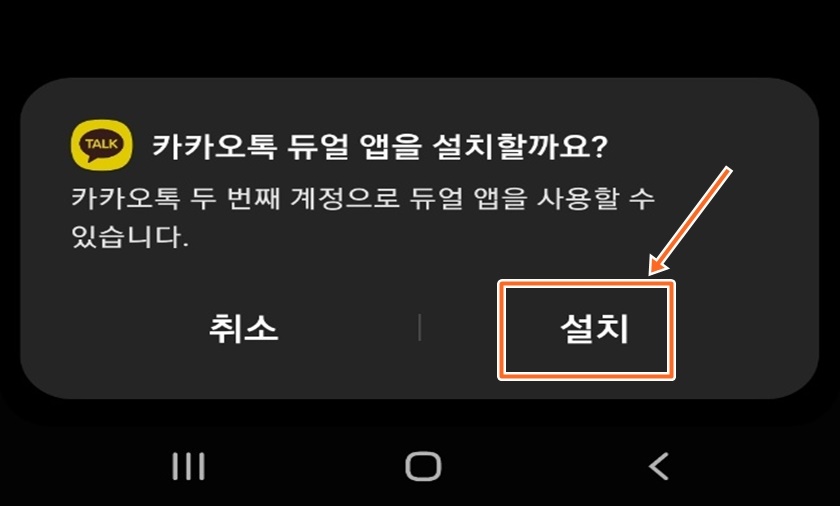 "카카오톡 듀얼 앱을 설치할까요?"라는 메시지가 나오면 "설치"버튼을 클릭해주세요.