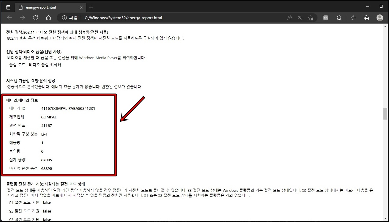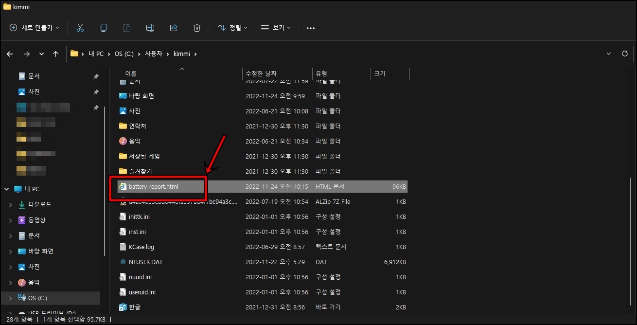 해당 경로를 찾아가서 battery-report.html을 더블클릭해서 열어주세요.