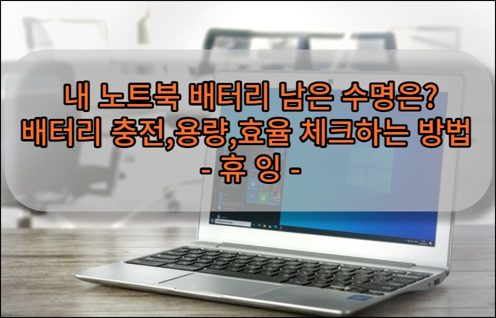 안녕하세요 오늘도 휴잉의 블로그를 찾아주신 여러분 감사드려요. 오늘 제가 포스팅할 내용은 노트북 배터리 남은 수명 충전, 용량, 효율 체크하는 방법에 대해 포스팅해보려고 해요. 노트북을 구매해서 오랫동안 사용하다 보면 충전이 잘 안 되거나 충전이 되더라도 배터리 소모가 빨리되는 경우를 종종 접할 수 있는데요. 이런 경우는 배터리의 수명 및 사이클이 다 되어 발생하는 문제로 볼 수 있어요. 아주 간단한 명령어로 여러분이 사용하는 노트북 배터리의 수명 및 사이클을 확인할 수 있는데 노트북도 정기점검하듯이 주기적으로 체크해주시면 좋을 것 같아요. 그럼 지금 시작해보도록 할게요.