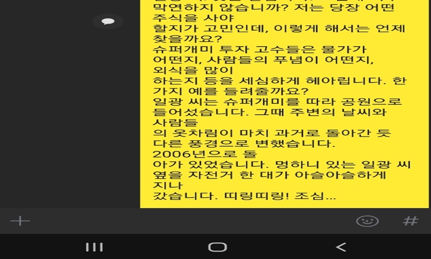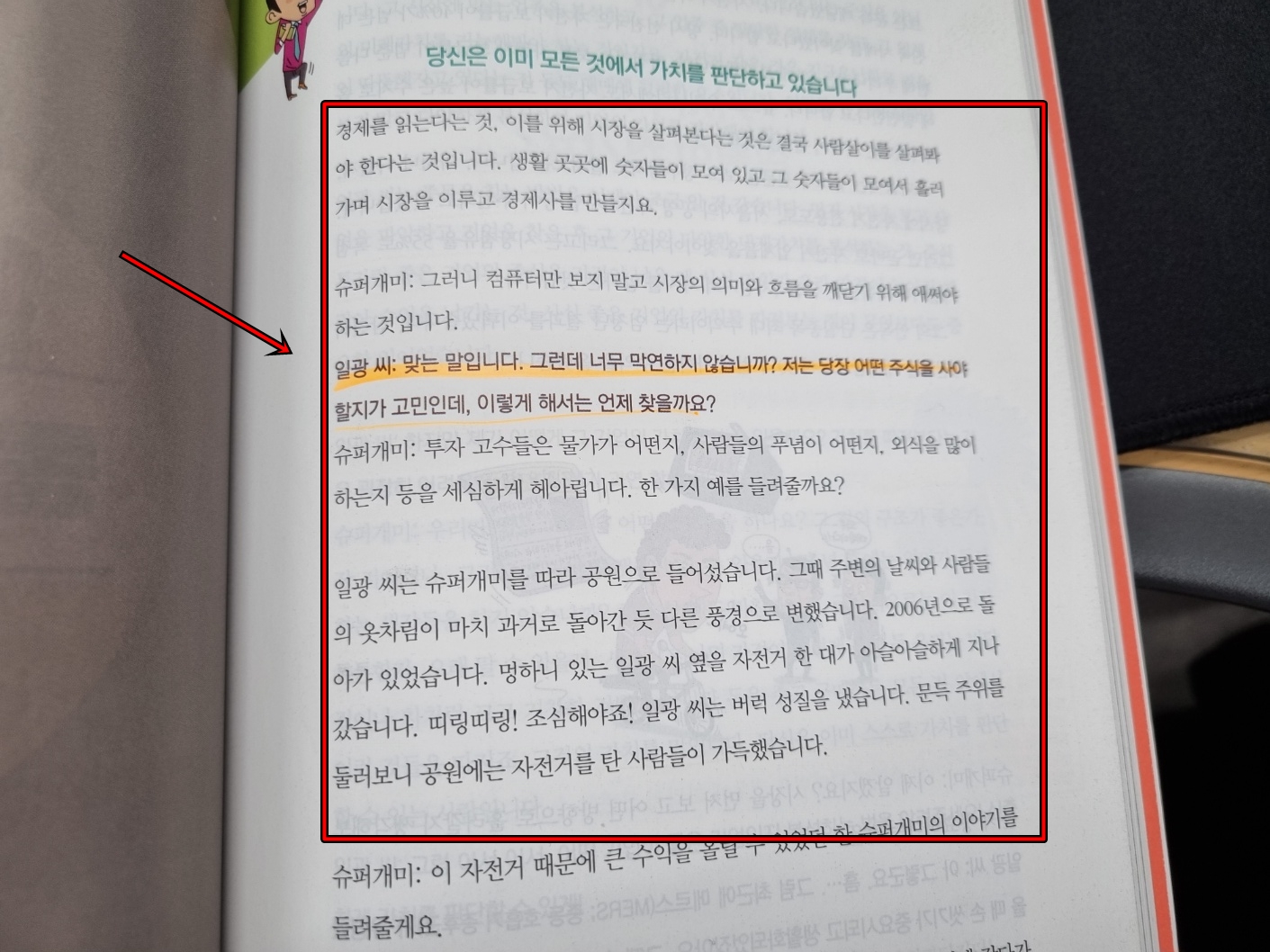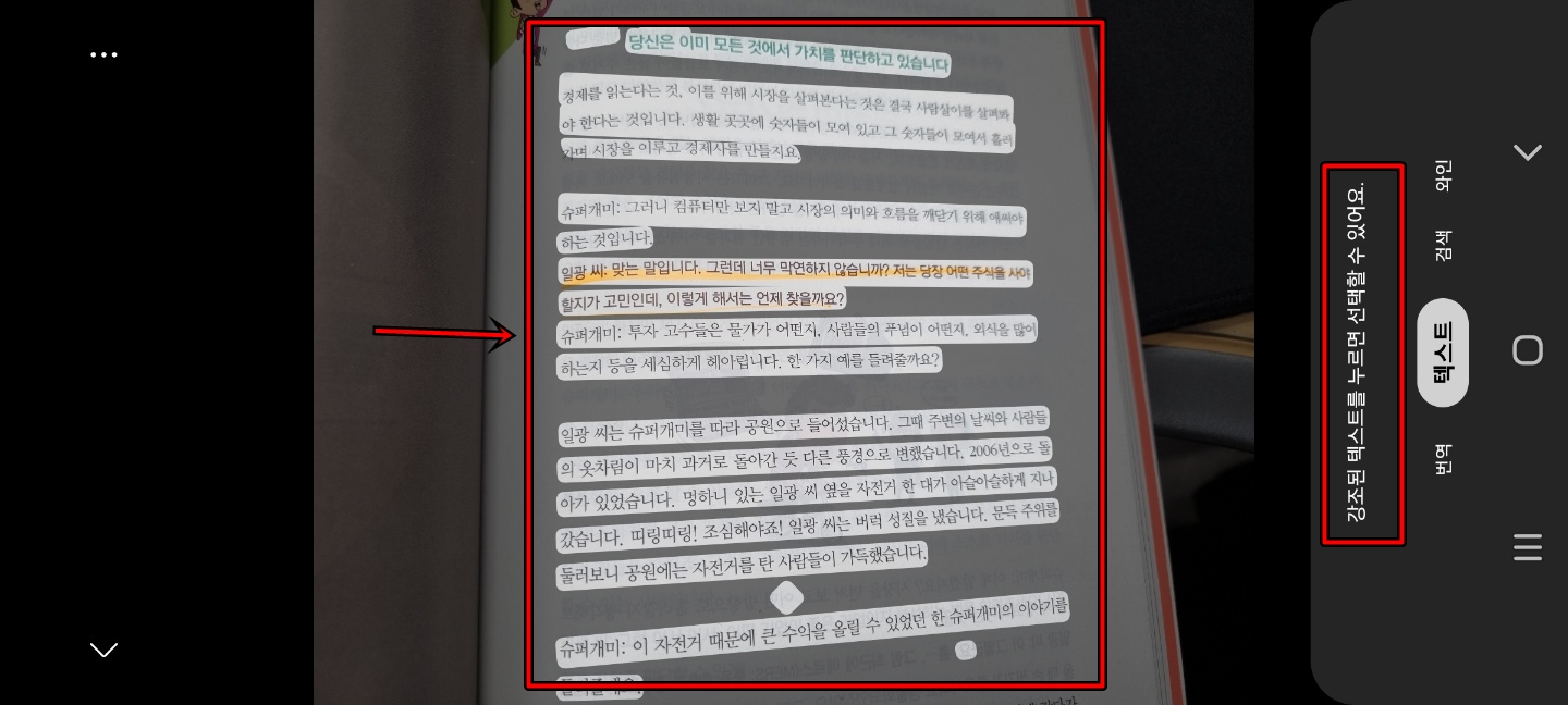우선 위와 같은 책속의 내용을 사진을 찍었다고 가정해 볼게요. 해당 텍스트를 수정하거나 누군가에게 텍스트로 보낼 때 일일이 타이핑하기란 여간 귀찮은 게 아닐 텐데요 아주 간단하게 텍스트만 추출해보도록 할게요.