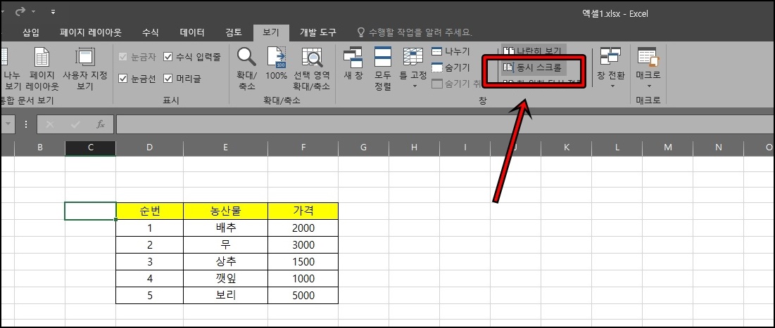 위에서 말씀드린 "동시스크롤"기능이 켜져 있어야지 마우스 스크롤을 오르고 내릴 때 같이 움직이니 참고해 주세요.