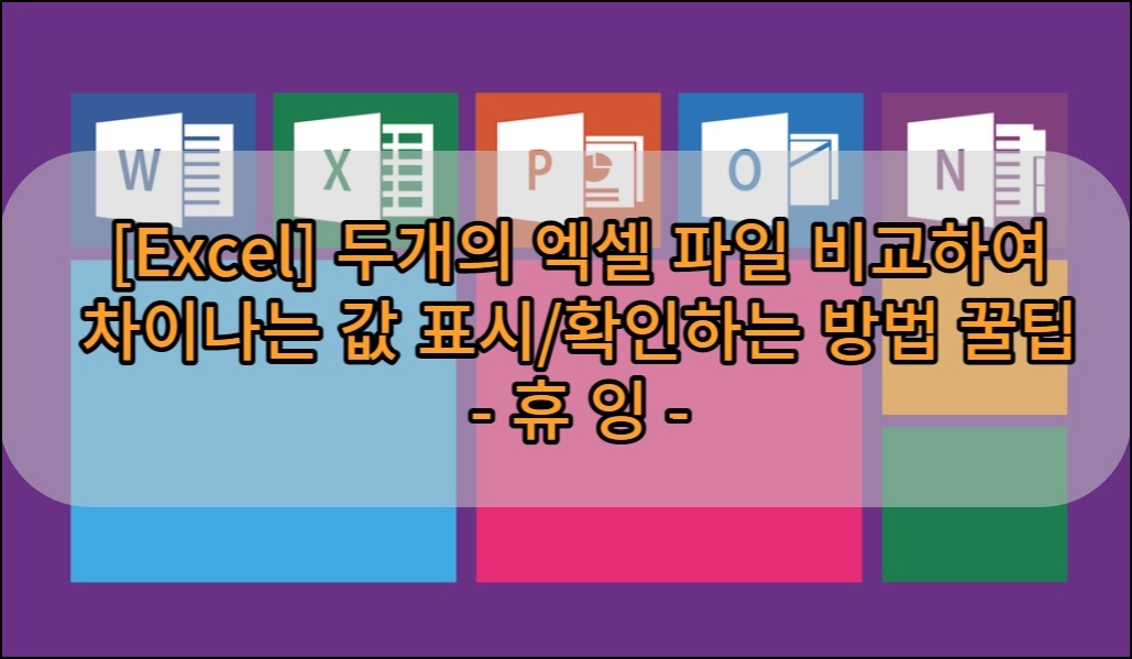 안녕하세요 오늘도 휴잉의 블로그를 찾아주신 여러분 감사드려요. 오늘 제가 포스팅할 내용은 비슷한 양식의 두 개의 엑셀파일을 비교하여 차이나는 값/표시하는 방법에 대해 설명드리려고 해요. 엑셀을 이용하여 문서작업하다 보면 비슷한 양식이나 데이터만 다른 폼의 엑셀 파일을 여러 개 만들기도 하는데요. 여러 개의 엑셀 파일의 데이터를 비교하기 위해 엑셀 파일을 열고 엑셀 파일의 데이터 문서를 수작업으로 비교하기란 여간 불편한 게 아니더라고요. 그래서 아주 간단하게 두 개의 엑셀파일을 나란히 보면서 스크롤을 통해 비교하거나 데이터가 다른 값을 강조하여 쉽게 비교할 수 있는 방법이 있는데 오늘 그 방법을 설명드릴게요.