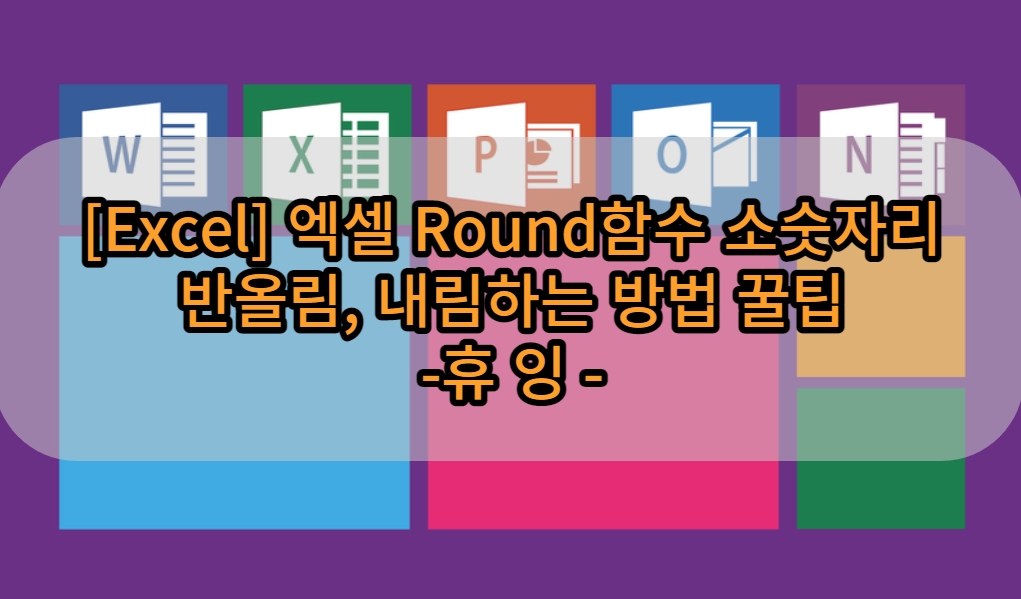 안녕하세요 오늘도 휴잉의 블로그를 찾아주신 여러분 감사드려요. 오늘 제가 포스팅할 내용은 엑셀에서 소숫자리 반올림, 내림하는 함수 "ROUND함수"사용방법에 대해 설명드리려고 해요. ROUND함수는 숫자를 지정한 자릿수로 반올림하는 함수로 소수점뿐 아니라 십의자리, 백의자리도 반올림이 가능한 함수예요. 반올림은 ROUNDUP, 내림은 ROUNDDOWN함수를 사용할 수 있는데, 간단히 예제를 통해서 어떻게 사용하는지 알아보도록 해요.