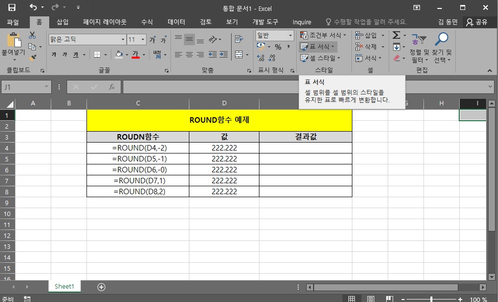 이제 ROUN함수를 조금은 아시겠죠?
