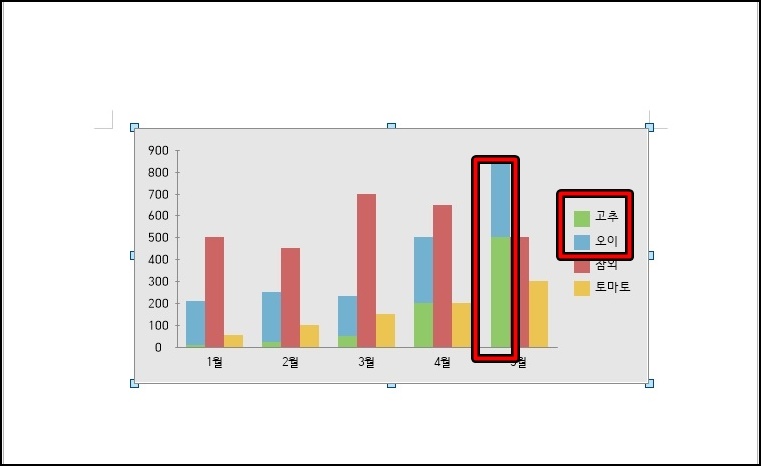 위 사진처럼 고추와 오이 그래프를 하나로 표시할 수도 있어요.