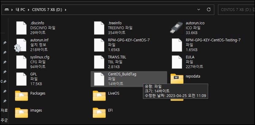 부팅용 USB가 완료되면 USB안에 CentOS 설치파일이 들어가 있는 걸 확인하실 수 있을 거예요. 참 쉽죠?^^