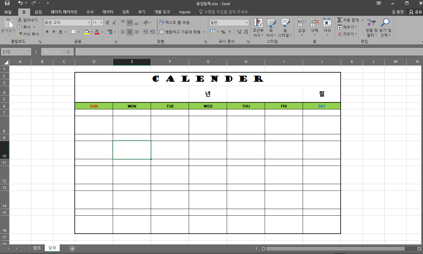 [Excel] 엑셀로 달력 만드는 방법 Feat.달력 나눔