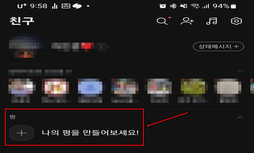 카톡을 열어보시면 위 사진과 같이 [펑]이라는 항목이 보이실 거예요 "나의 퍽을 만들어보세요!"를 클릭해 주세요.