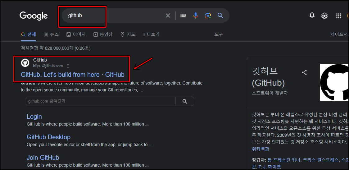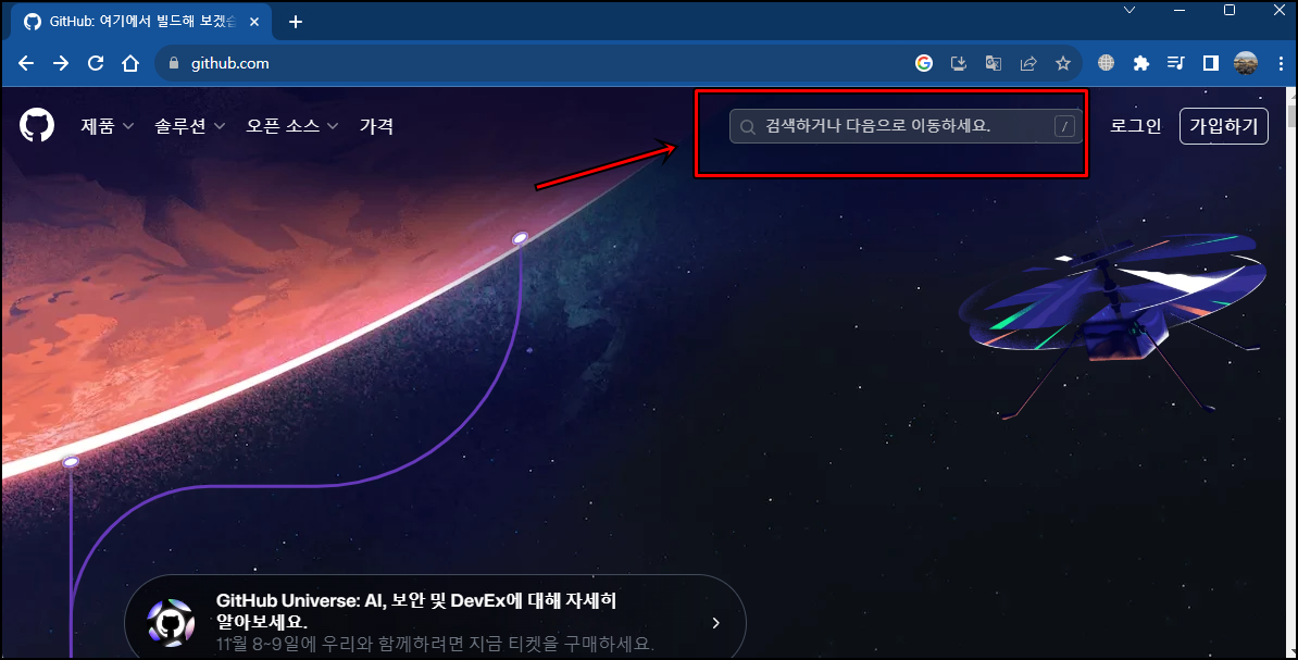 먼저 구글검색창에 "github"라고 검색을 하셔서 위 사진속 홈페이지에 접속해 주세요. 깃허브는 소프트웨어 개발자들이 영리적인 서비스와 오픈소소를 위한 무상 서비스를 제공하는 곳으로 바이러스에 안전하니 걱정하지 말고 사용하셔도 좋을 것 같아요.