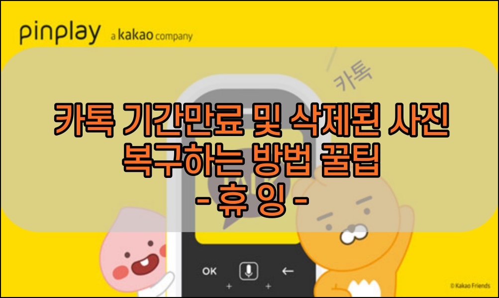 안녕하세요 오늘도 휴잉의 블로그를 찾아주신 여러분 감사드려요. 오늘 제가 포스팅할 내용은 카카오톡에서 대화에서 삭제되거나 기간만료로 인해 사진 및 동영상 파일 등을 다운로드할 수 없을 때 복구하는 방법에 대해 포스팅해보려고 해요. 카톡을 사용하다 보면 용량문제로 인해 사진을 지우거나 카톡방을 나가는 등 사진이나 동영상 등의 파일이 삭제가 되는 경우가 많이 있어요. 중요하지 않은 사진이나 파일의 경우 상관없겠지만 중요한 사진, 파일의 경우 백업해두지 않으셨다면 당황스러우실 거예요. 이럴 때는 보통 복구전문업체를 통해 파일을 복원하는 방법도 있지만 가격도 업체마다 천차만별이기도 하고 복구된 파일의 값어치가 몇백 몇천만 원이 아닐 경우 금전적으로 아까울 것도 같은데요. 그래서 제가 여러분들도 집에서 직접 카톡에 지워진 사진을 복구할 수 있는 방법을 소개해드리려고 하니 한번 따라서 해보시면 좋을 것 같아요.
