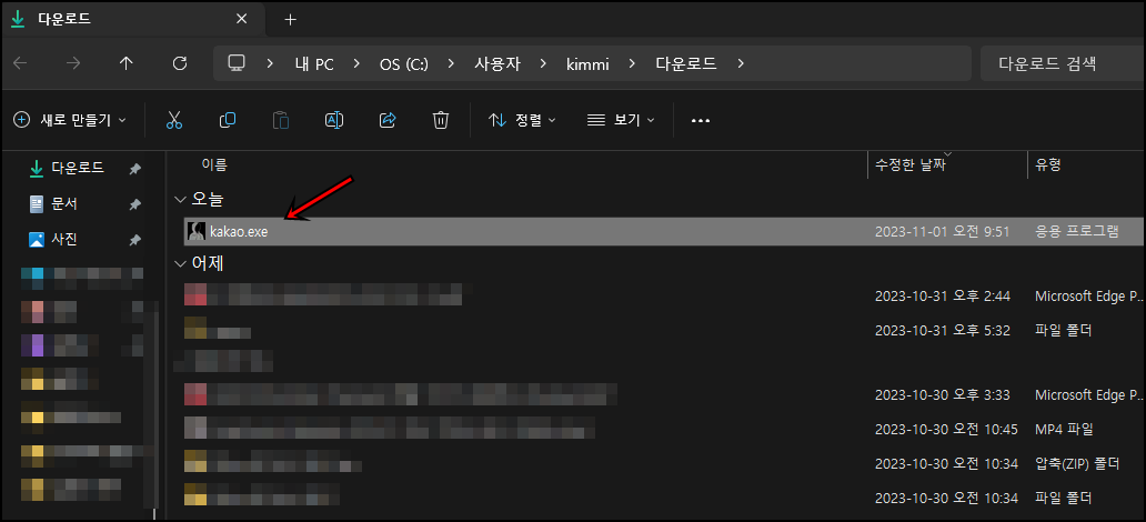 다운로드가 완료되면 "kakoa.com"실행파일을 확인하실 수 있는데 더블클릭해서 실행해 주세요.