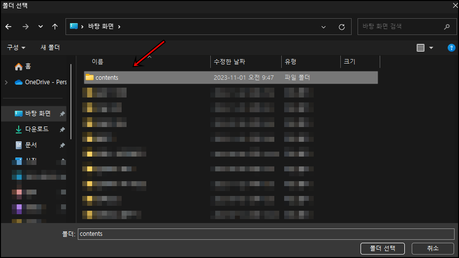 아까 PC에서 다운로드하였던 contents 폴더를 선택해 주세요.