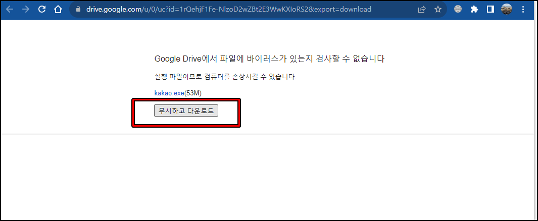"무시하고 다운로드"버튼을 클릭해 주세요