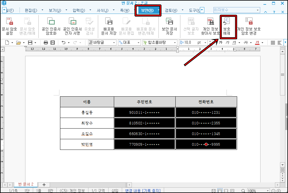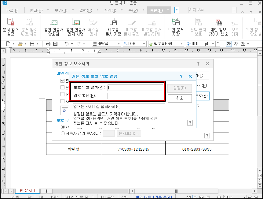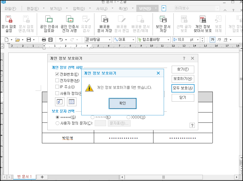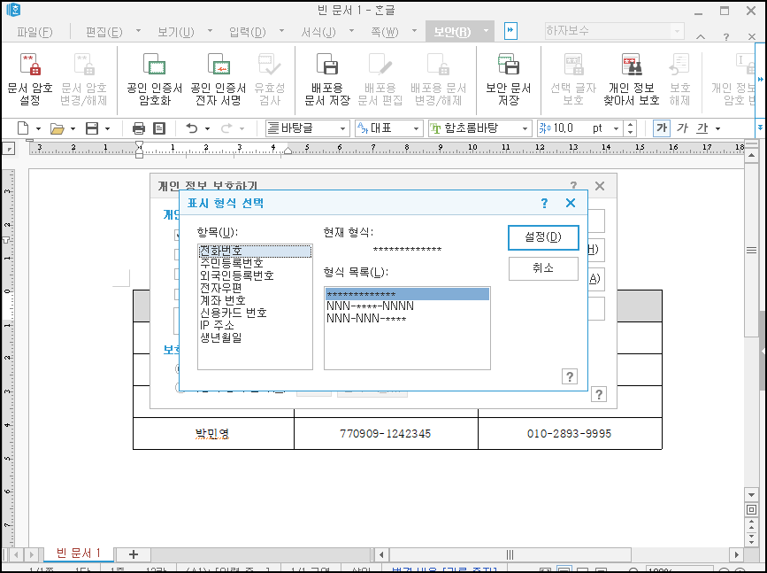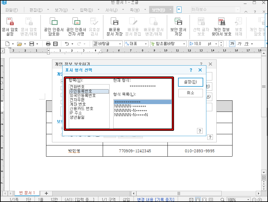 [한글] 한글에서 주민번호 혹은 전화번호등 개인정보 숨기는 방법
