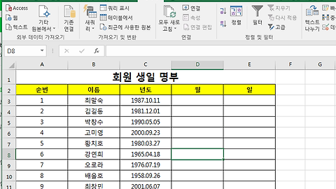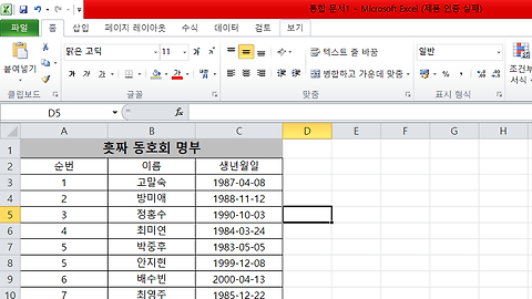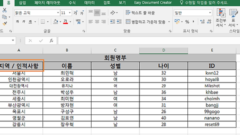 ▲ 예를 들어 위와같은 회원명부가 있다고 가정을 할게요. 만약 회원에서 "유지나" 회원이 탈퇴하거나 무슨 회원 취소가 될경우 표시를 해야하는데 색상을 입혀도 되겠지만 취소선을 적용해서 표시를 해볼게요.