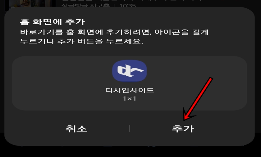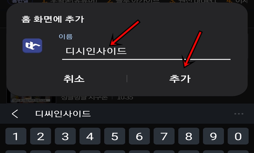 스마트폰 홈 화면에 저장될 이름을 입력후 [추가]버튼을 클릭해주세요.