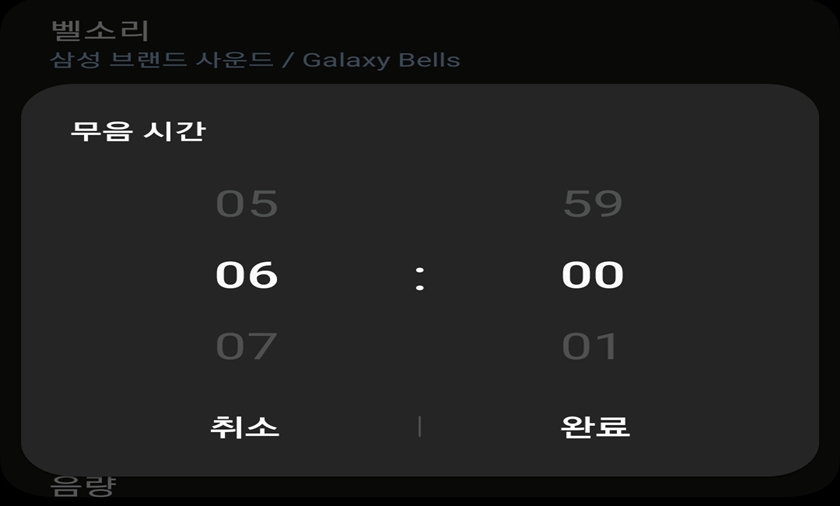 무음 시간은 시, 분까지 적용할 수 있어요. 여러분들이 무음을 적용할 시간을 지정후 [완료] 버튼을 클릭해 주세요.