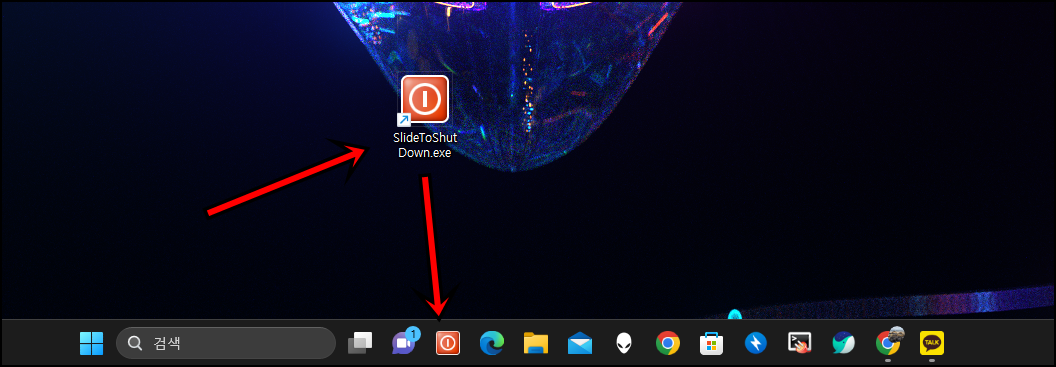 SlideToShutDown아이콘이 변경되면 해당 아이콘을 클릭, 드래그하여 시작표시줄에 넣어주세요. 첫 번째가 1번으로 시작하게 돼요.
