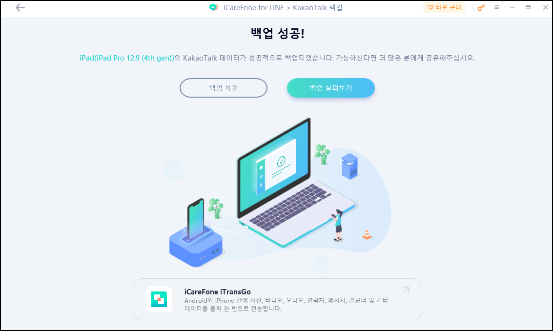 공식페이지를 통해 "iCareFone for Kakao Talk 아이케어폰 카카오톡" 프로그램을 다운로드 후 설치를 진행, 실행해 주세요.