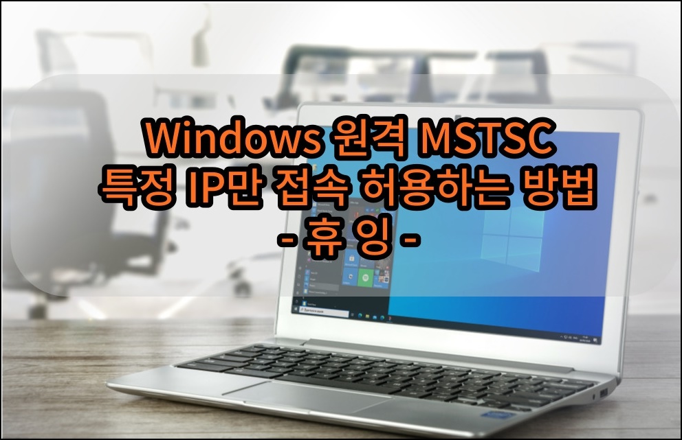 안녕하세요 오늘도 휴잉의 블로그를 찾아주신 여러분 감사드려요. 오늘 제가 포스팅할 내용은 "Windows 원격 MSTSC 특정 IP만 접속 허용하는 방법"에 대해 포스팅 해보려고해요. 사실 오늘 포스팅은 누군가에게 보여주기보단 저 스스로 기록을 남기기 위해 작성하는 포스팅이에요. 저는 회사에서 업무용 PC, 인터넷용 PC 2대를 사용하고 있는데, 다루는 문서, 작업들이 대외비 혹은 해킹발생 시 민감한 내용들이라 업무 PC는 인터넷이 차단되어 있고 검색등 인터넷이 필요할 때는 업무망접속이 차단된 인터넷 PC를 이용하는데요. 모니터 2개를 넣고 사용하기에는 자리도 협소하고 그래서 모니터 한대로 KVM을 사용했었죠. 하지만 이 또한 스위치를 변경해야 하는 번거로움이 생기더라고요. 그래서 약간 편법이긴 하지만 업무망 PC에서 mstsc로 인터넷망 PC로 접속해서 한 화면에서 업무작업과 인터넷검색을 동시에 해보려고 해요. 그렇다면 여기서 중요한 부분은 저 혼자만 접속할 수 있도록 윈도 방화벽으로 보안을 강화해야 하는데, 어떻게 하면 mstsc를 특정 IP만 접속하는지 알아도 보록 해요.