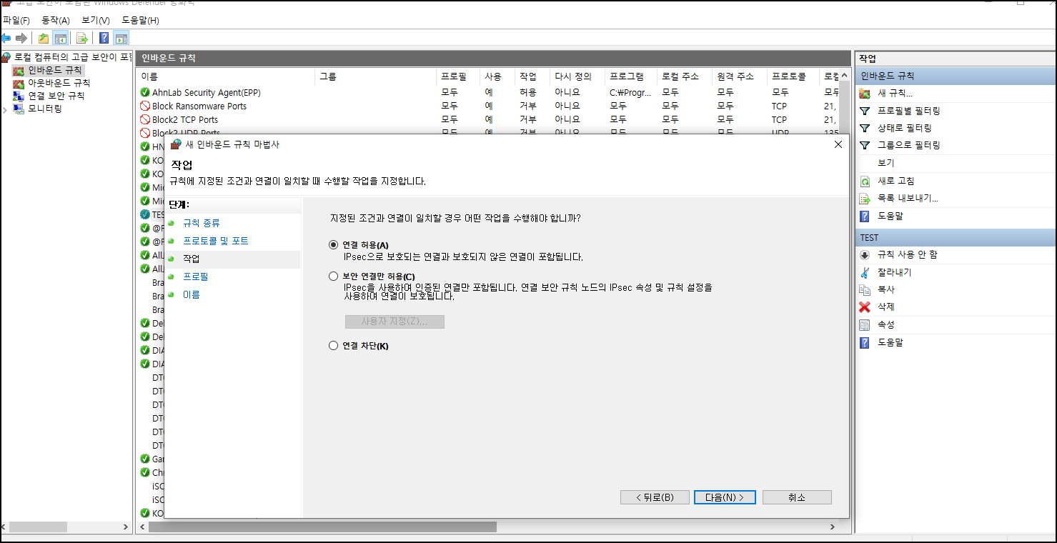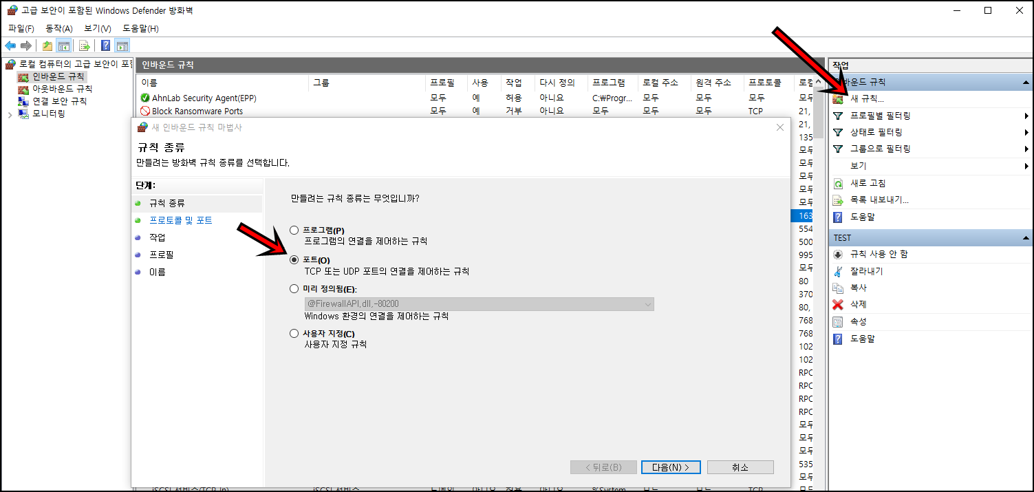 인바운드 규칙을 클릭하고 "새 규칙"을 클릭해 주세요.