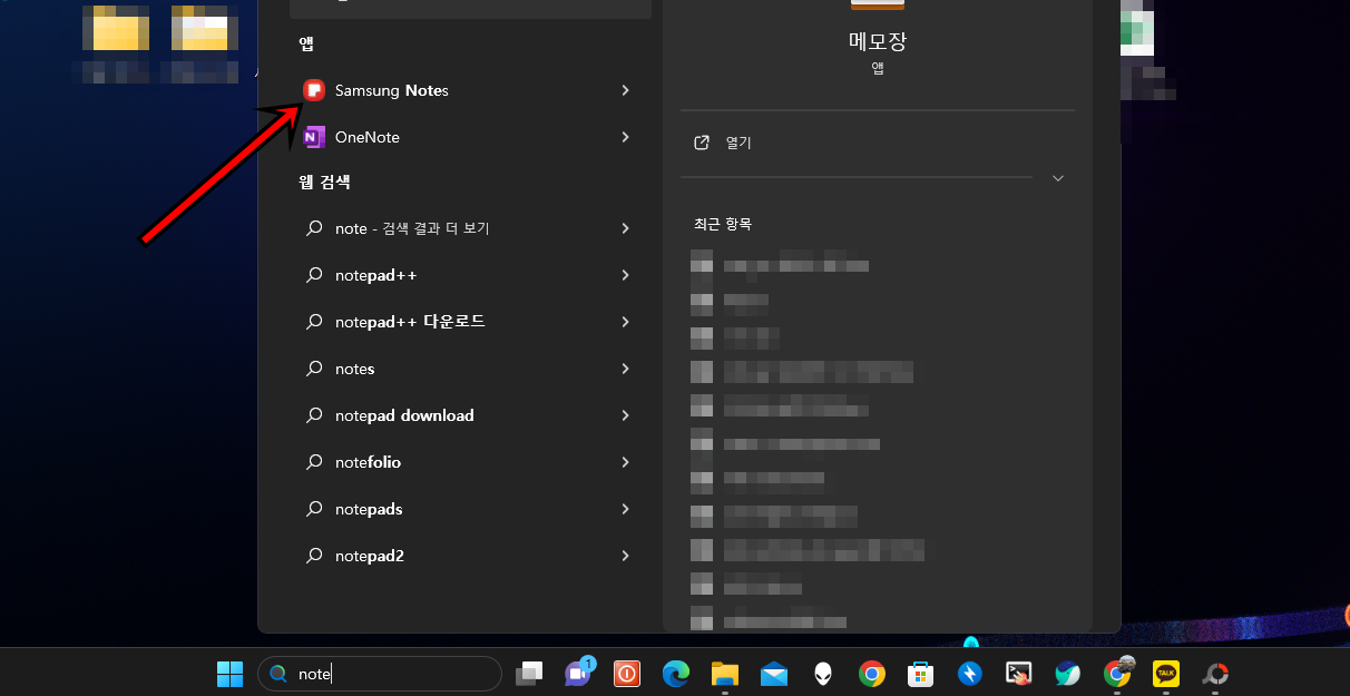 Samsung Notes 앱이 설치가 되었어요. 한번 실행해 보도록 할게요.