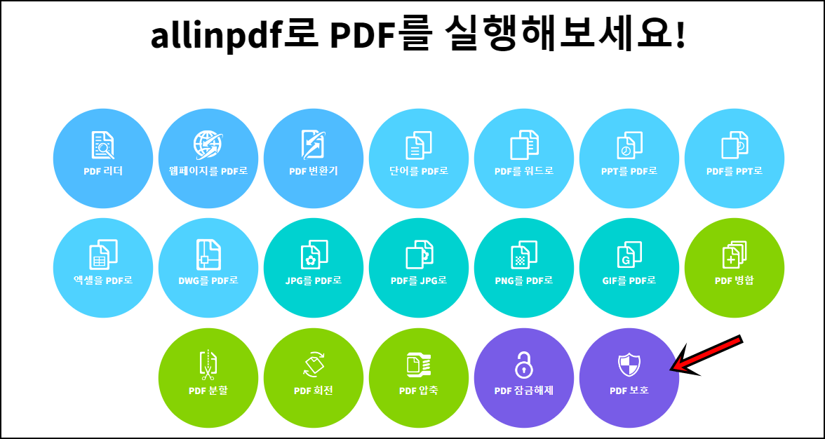 우선 위 걸어둔 링크에 접속하시면 위 사진과 같이 확인이 되실 거예요. 어려가지 메뉴 중에서 [PDF 보호] 메뉴를 클릭해 주세요.