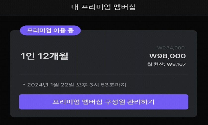 우선 말해보카는 현재 1인 12개월 연 9800원, 월 환산으로 8,167원에 이용이 가능해요. 저는 24년 1월 22일까지 무료체험 기간인데 이후에도 이용하려고 해요.