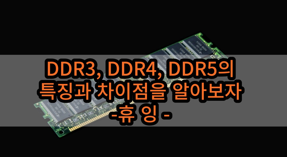 안녕하세요 오늘도 휴잉의 블로그를 찾아주신 여러분 감사드려요. 오늘은 컴퓨터 메모리에 대한 포스팅을 해보려고 해요. 지난번 CPU나 그래픽카드에 대해 알아보았는데, 오늘은 CPU, 메모리카드와 더불어 PC성능의 중요한 요소 중 하나인 메모리의 DDR3, DDR4, DDR5에 대해 어떤 특징과 차이점을 가지고 있는지 이야기해볼까 해요. 컴퓨터 메모리라는 말들은 누구나 한 번쯤 들어보셨을 텐데 DDR3, DDR4, DDR5 이게 뭐지라고 생각하는 분들이 많을 텐데, 오늘 제가 쉽고 간단하게 정리해서 설명드릴게요.