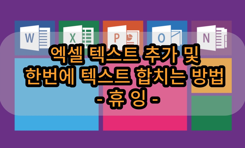 안녕하세요 오늘도 휴잉의 블로그를 찾아주신 여러분 감사드려요. 오늘 제가 포스팅할 내용은 "엑셀 텍스트 한 번에 추가 및 한 번에 텍스트 합치는 방법"에 대해 알아보려고 해요. 엑셀을 사용하다 보면 모든셀에 일괄적인 텍스를 입력해야 할 때도 있고 여러 셀을 하나의 셀로 합쳐야 되는 경우도 있는데요. 만약 방법을 모른다면 수작업으로 하나씩 타이핑하는 막일 작업을 할 수밖에 없어요. 그래서 오늘 아주 간단한 포스팅으로 모든셀에 텍스트 일괄입력과 텍스트를 하나의 셀로 합치는 방법을 간략하게 설명드릴게요.