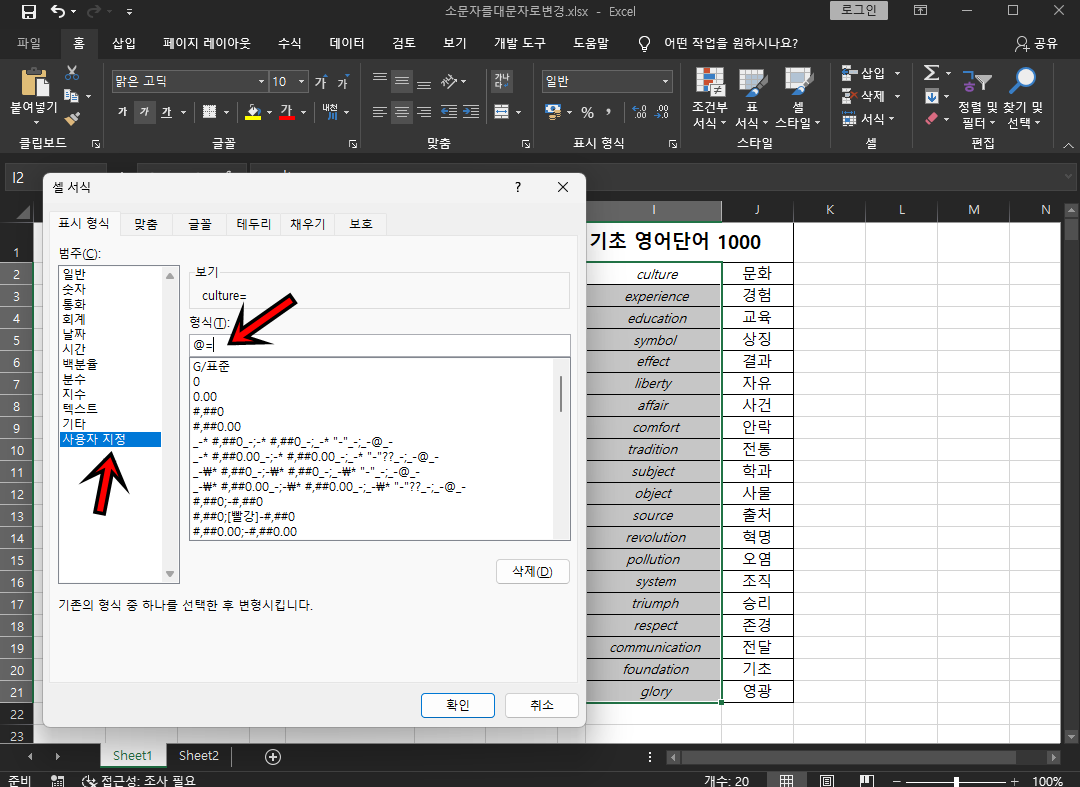 짜잔!! 영어단어 뒤에 한 번에 텍스트가 입력되었어요. 참 쉽죠?^^