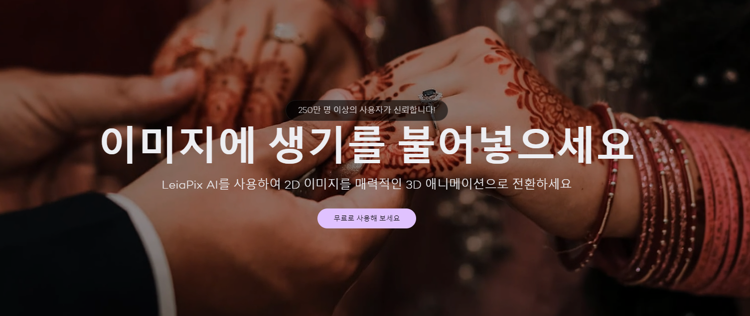 우선 위에 링크된 LeiaPix 홈페이지로 이동해주세요. 홈페이지 이동후 위 사진처럼 "무료로 사용해 보세요" 부분을 클릭해 주세요.