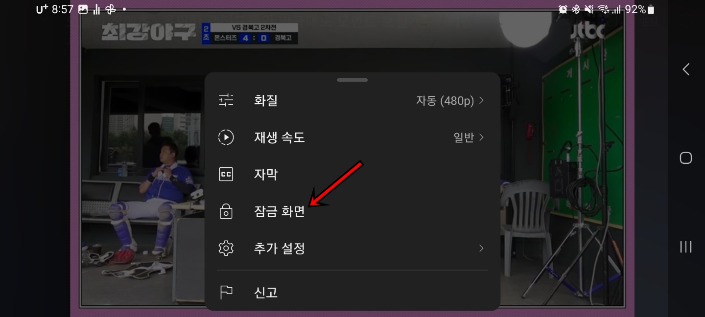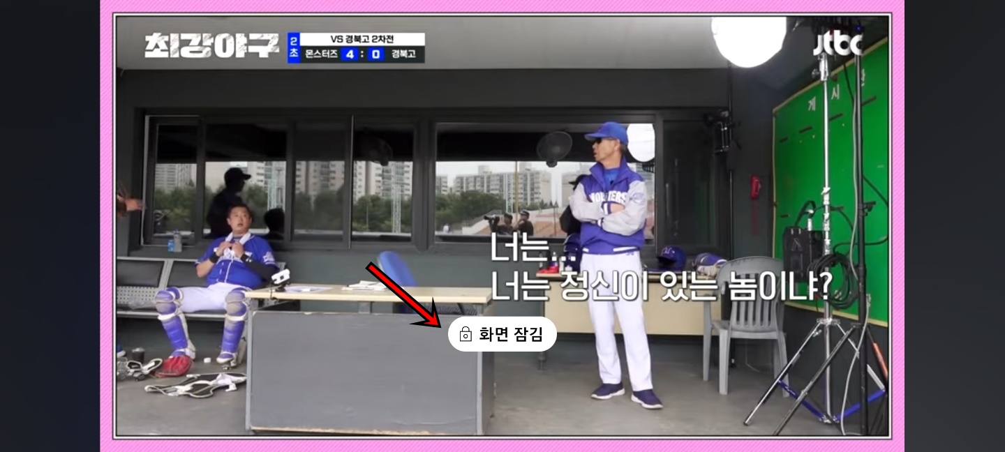 이제 영상을 시청할 때 화면을 클릭해도 화면이 잠겨있어서 터치가 되지 않아요. 다시 화면을 풀고 싶으시면 화면을 한번 터치 후 사진 속 보이는 것과 같이 "화면 잠김"버튼을 한번 더 클릭하시면 돼요.!!!