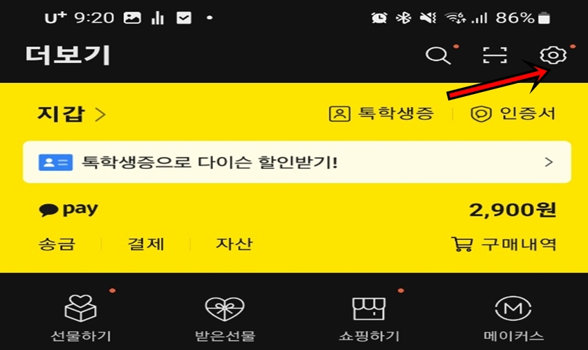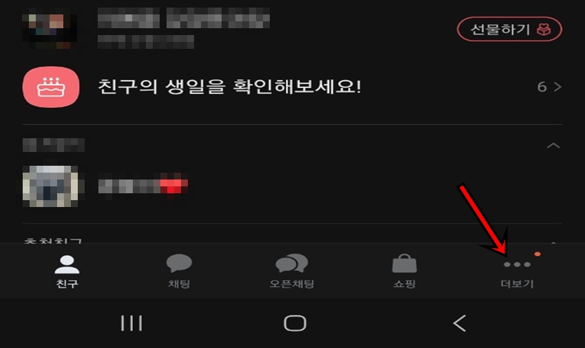 설정방법은 매우 간단해요. 우선 여러분의 스마트폰에서 카카오톡을 실행후 위 사진처럼 [더 보기] 메뉴를 클릭해 주세요