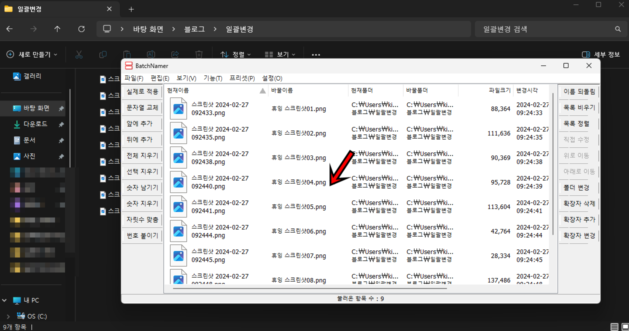 짜잔!! 실제 파일들의 이름이 한 번에 변경되는 걸 확인할 수 있어요. 참 쉽고 간편하죠?^^