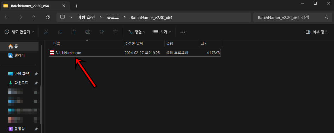 파일을 다운로드후 BatchNamer.exe 프로그램을 실행해 주세요