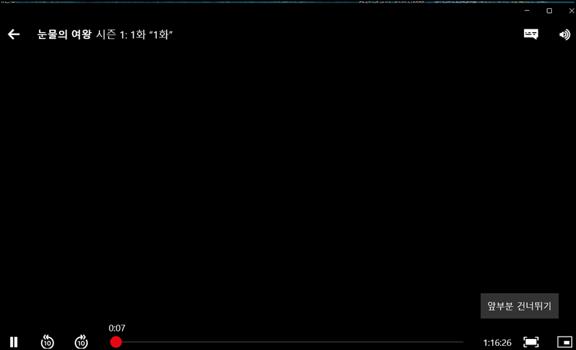 위 사진처럼 영상이 저장 중이라는 메시지가 나오는데 드라마 한 편 기준 약 30초 정도가 소요된 것 같습니다. 다운로드가 다되면 이제 오프라인환경에서도 영상을 시청할 수가 있습니다. 혹시나 못 믿는 분들을 위해 인터넷을 오프라인으로 변경 후 확인해 보도록 하겠습니다.
